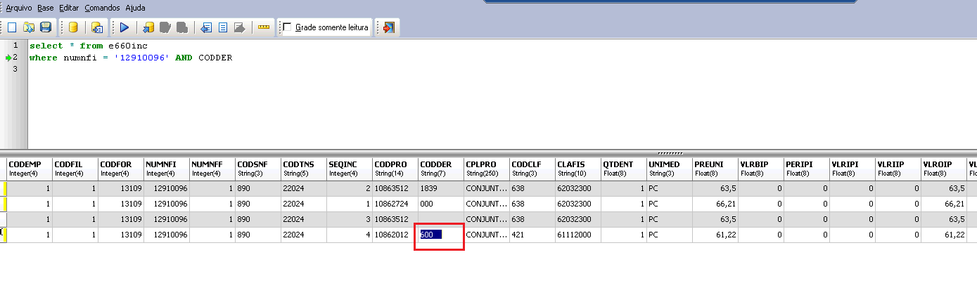 Solução: Solução 17741: Realizar a consulta do item duplicado em uma ferramenta de banco e consultar o campo CODDER da NF.