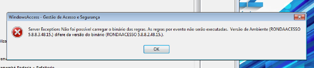 Não foi possível carregar o binário das regras. As regras por evento não serão executadas. Versão de Ambiente difere da versão do binário.