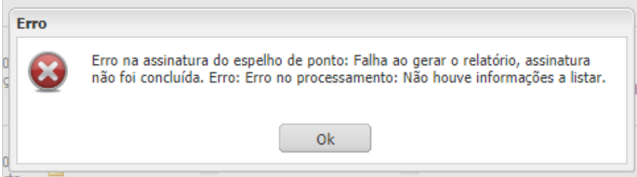 No módulo Gestão do Ponto, ao tentar visualizar ou assinar o espelho de ponto, é apresentada a mensagem: Não houve informações a listar.