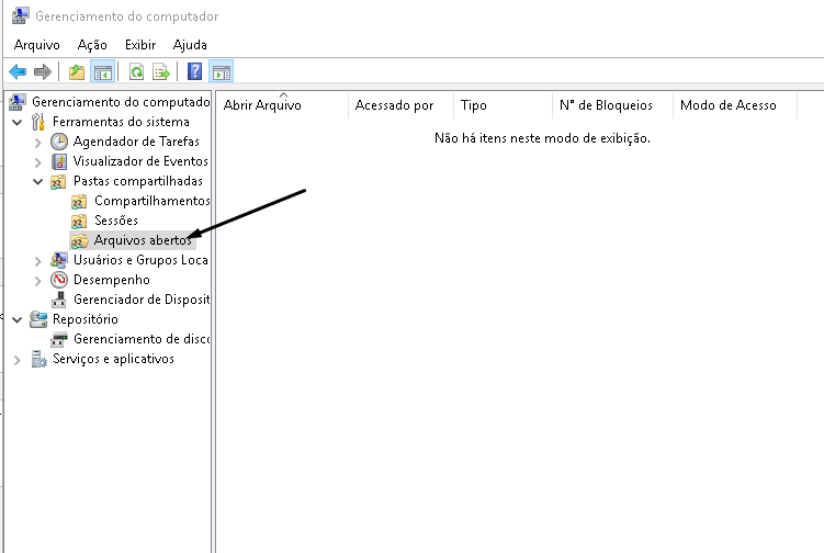 Solução: Solução 20148: Na tela Gerenciamento do computador, item de menu ferramentas do sistema > pastas compartilhadas > arquivos abertos, vide anexo, apagar o arquivo txt de marcações que consta como aberto.