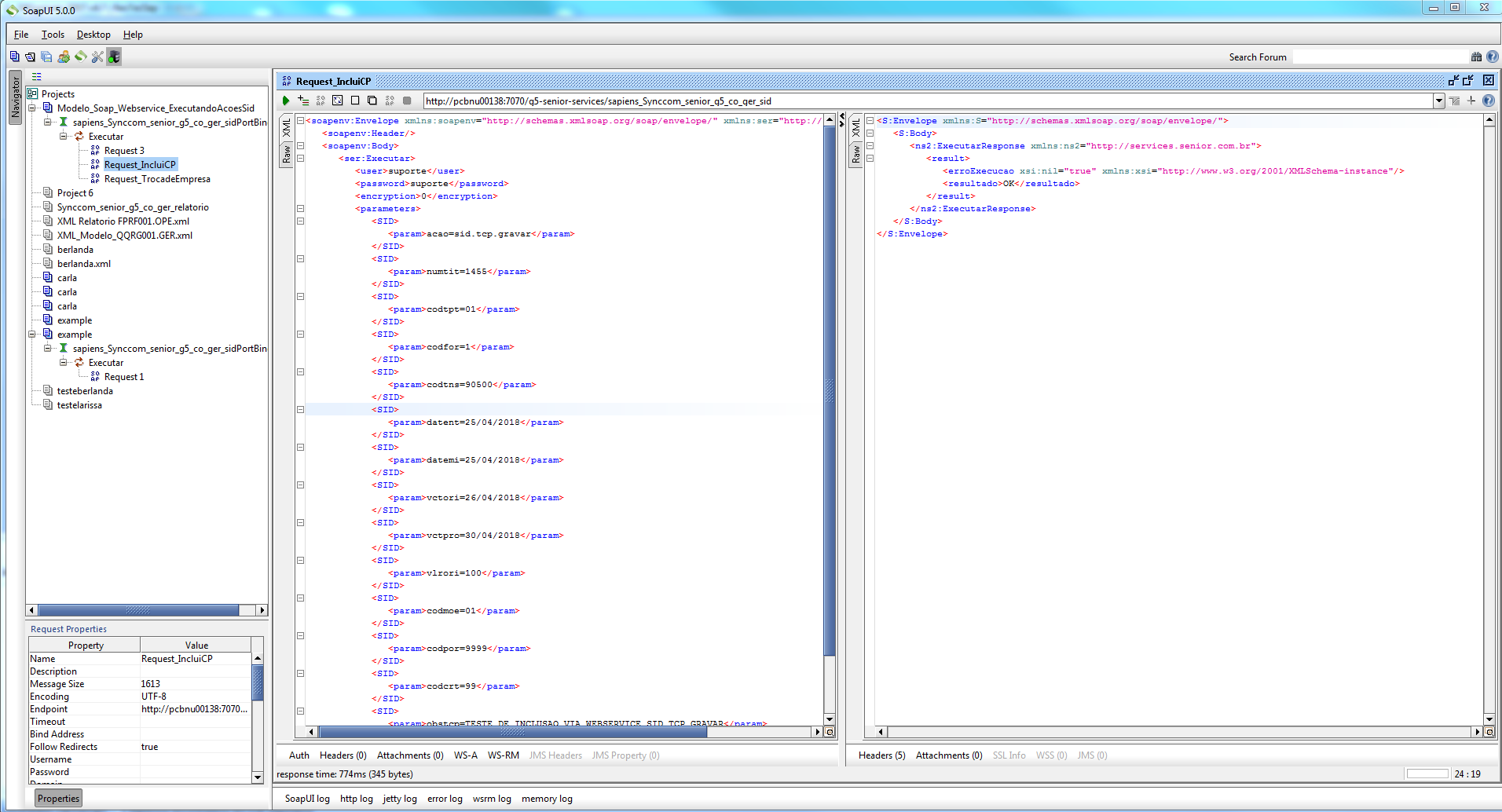 Estou consumindo o webservice com.senior.g5.co.ger.sid e executando a ação SID para incluir títulos sid.tcp.gravar