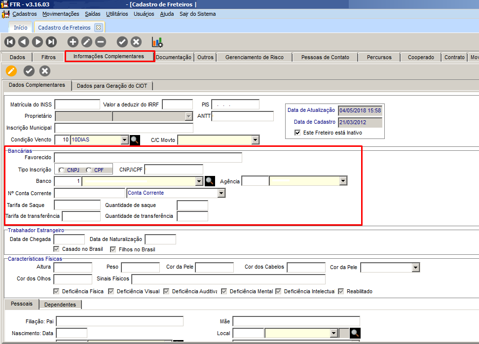 TMS – Cadastro de Freteiros – Como cadastrar conta corrente para motorista terceiro