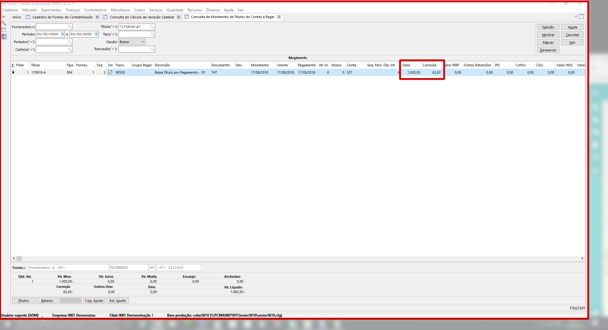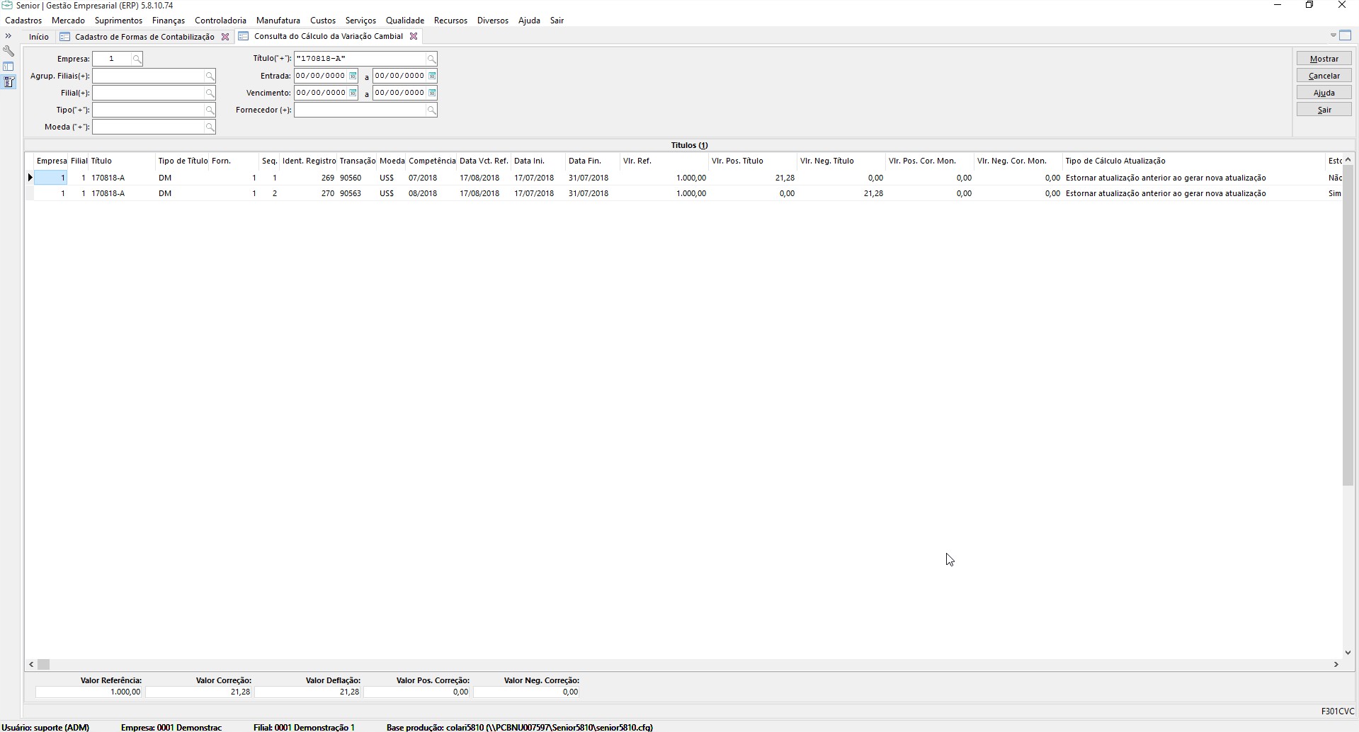 Rotina / Tela: Variação cambial conta a pagar e contas a receber