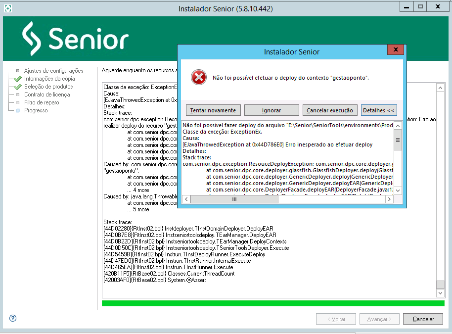 Falha ao realizar deploy da aplicação Gestão do Ponto através do instalador/atualizador Senior.