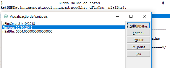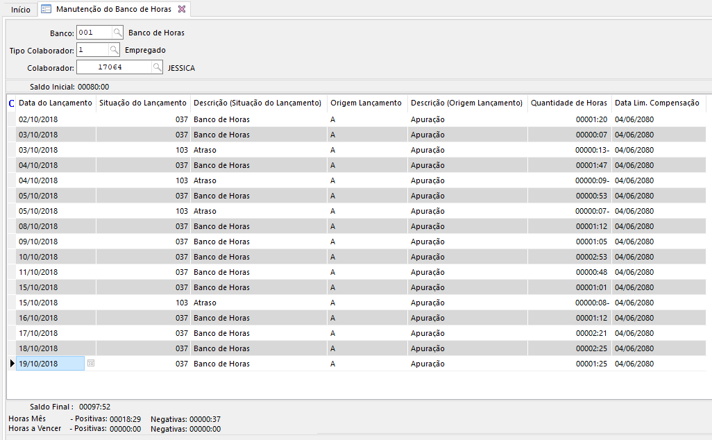 Problema: Ao utilizar a função RetBhrDat em uma regra de cálculo final da integração, o saldo retornado não é o mesmo que aparece na tela de manutenção do banco de horas.