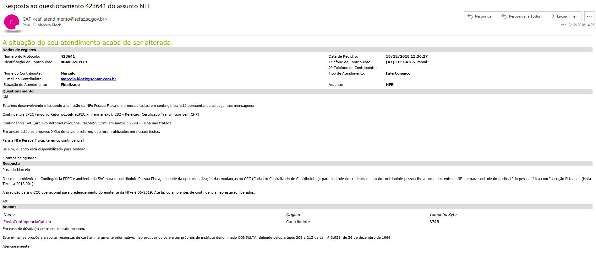 Essa situação poderia ocorrer antes da vigência da NT 2018.001, pois na época a SEFAZ ainda não estava permitindo emissão de NF-e Pessoa Física em Contingência: