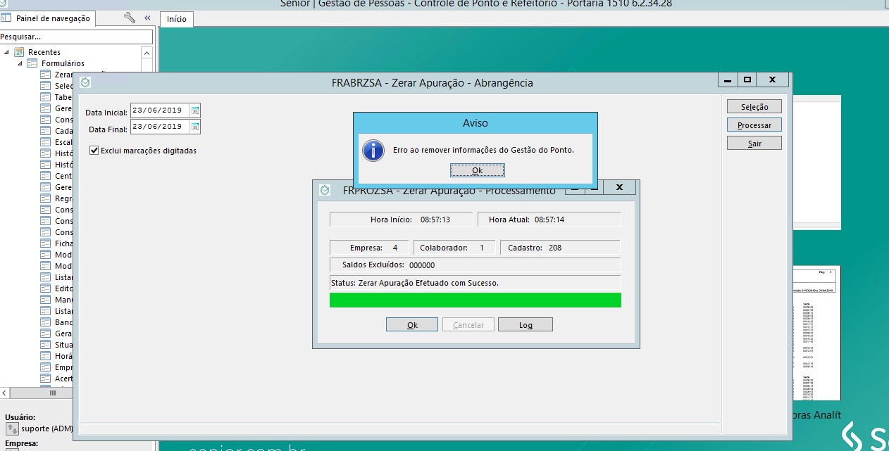 HCM - Apuração - Erro ao remover informações do Gestão do Ponto