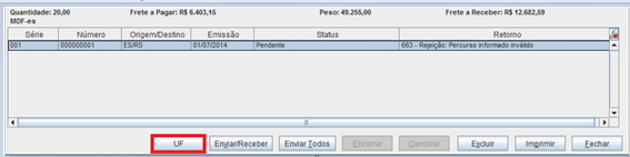 Ou seja, sempre que houver uma UF diferente entre a UF de Origem e a UF de Destino, deverá acessar a tela de Documentos da Viagem (Trucker->Operacional->Tráfego->Gerenciamento de Tráfego, botão Documentos), clicar no botão: UF e informar todos os estados por onde o veículo irá passar.