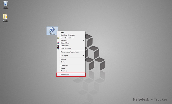 Na sua máquina, deverá clicar no ícone Trucker com o botão direito, depois, selecionar a opção Propriedades.