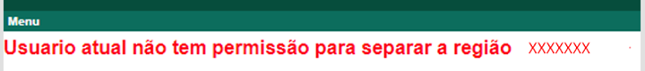 Esta mensagem é apresentada, pois o usuário não esta vinculado a Região de Separação.