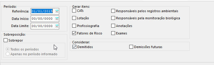 Agora, é possível manter o histórico gerado o PPP por GHE em dois períodos diferentes. É relevante reforçar que deve-se tomar muito cuidado com o checkbox "sobrepor", visto que se utilizado, poderá apagar todo o histórico gerado anteriormente no PPP para o período de colaborador -> GHE: