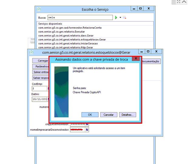 Se executada em modo "local", é possível ver que o ERP está pedindo um "OK" na parte de assinatura do certificado.