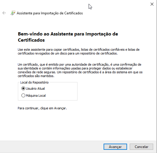Neste mesmo passo a passo é citado o ponto onde provavelmente o certificado foi instalado diferentemente no cliente.
