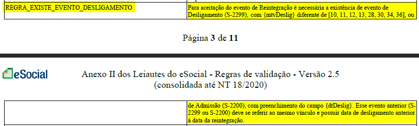 Hoje não existe uma orientação na CLT para este processo de reintegração. Então adota-se no sistema o que está determinado no eSocial, ou seja, o contrato pode ser restabelecido, mas a rescisão permanece: