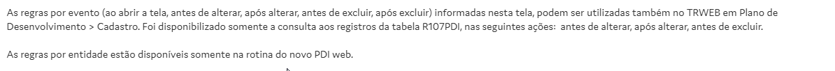 Solução: As regras por entidade estão disponíveis apenas no PDI Web.