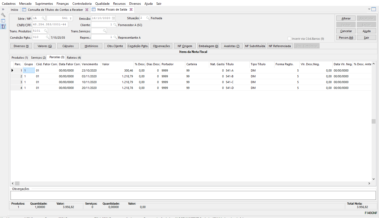 25456 - Cálculo comissão com mais de uma parcela