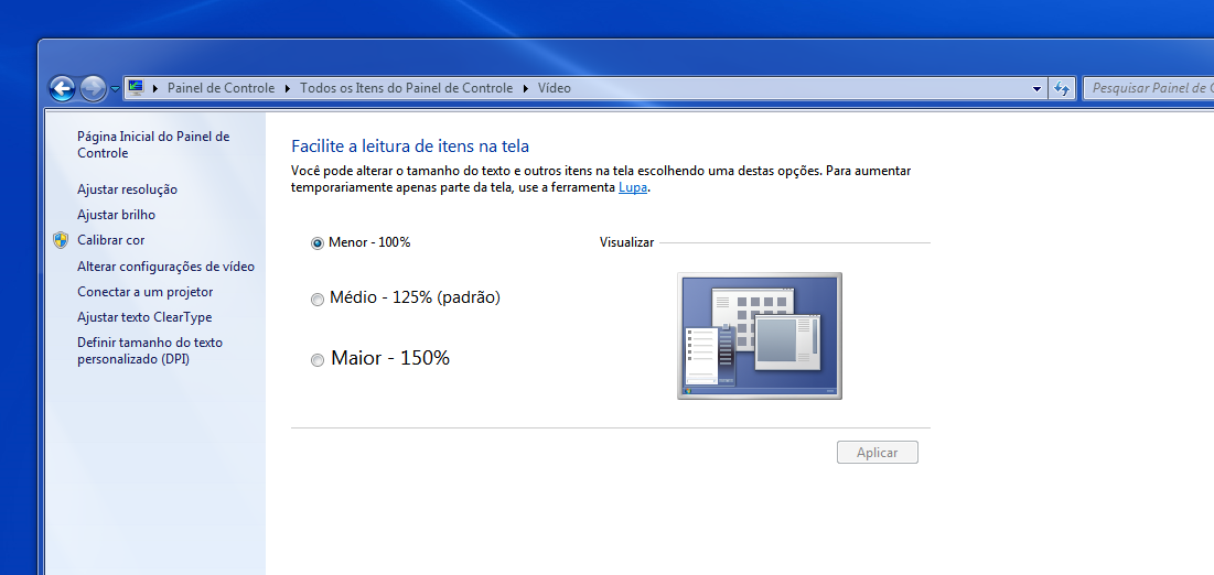 2) Alterar a visualização de vídeo para 100% (conforme print em anexo).