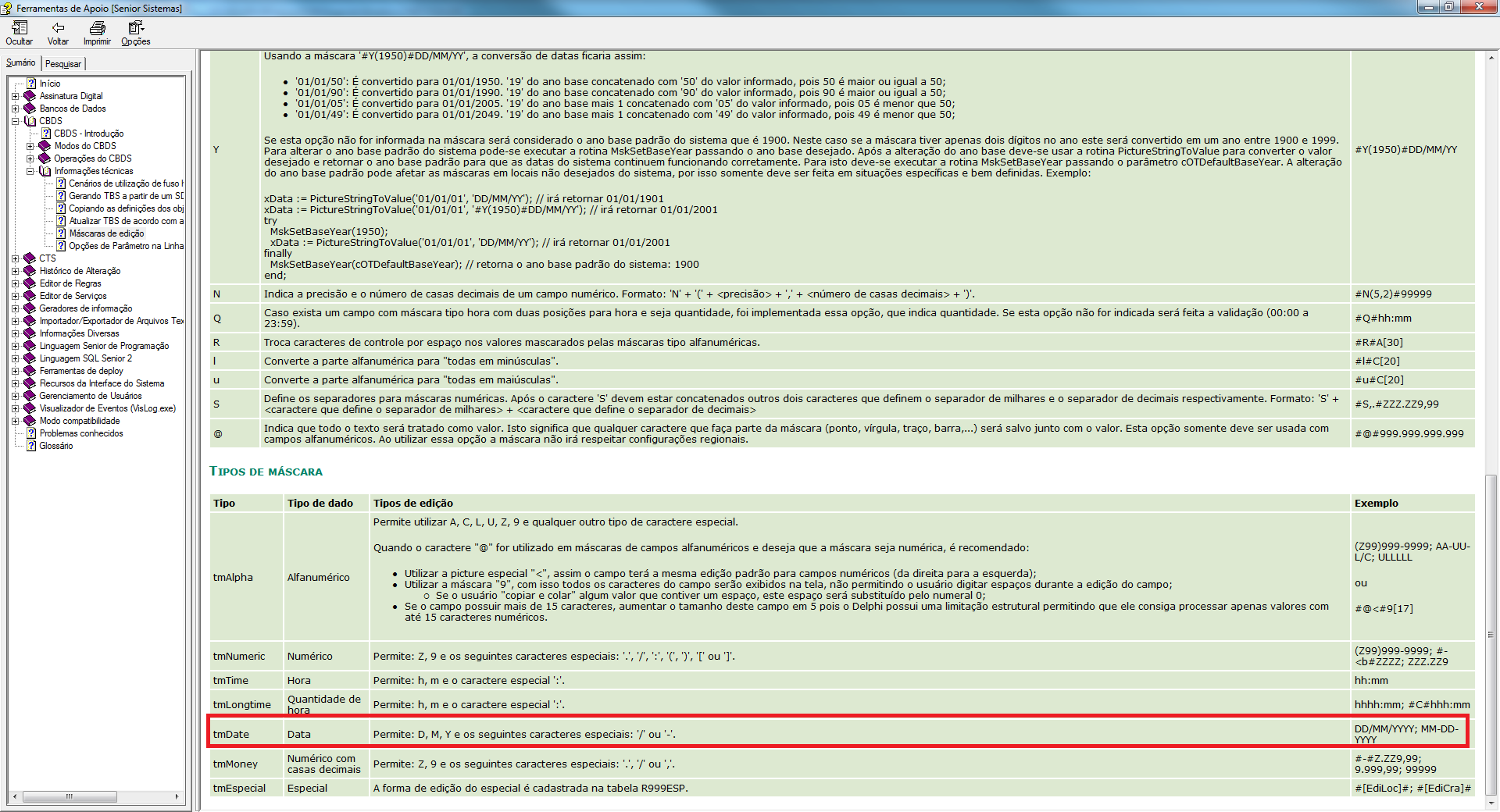 Problema: Cliente está desenvolvendo um importador, que terá um campo data, composto da Data e Hora. Conforme lido na help do Ferramentas de apoio, o ERP pode reconhecer tipo date com precisão de horas, minutos e segundos também. Entretanto, ao colocar essa máscara no importador, e executar o mesmo, o registro vai para o Banco de Dados somente com a Data. A máscara definida no importador e no CBDS para o campo em questão é 'DD/MM/YYYY HH:MM:SS'.