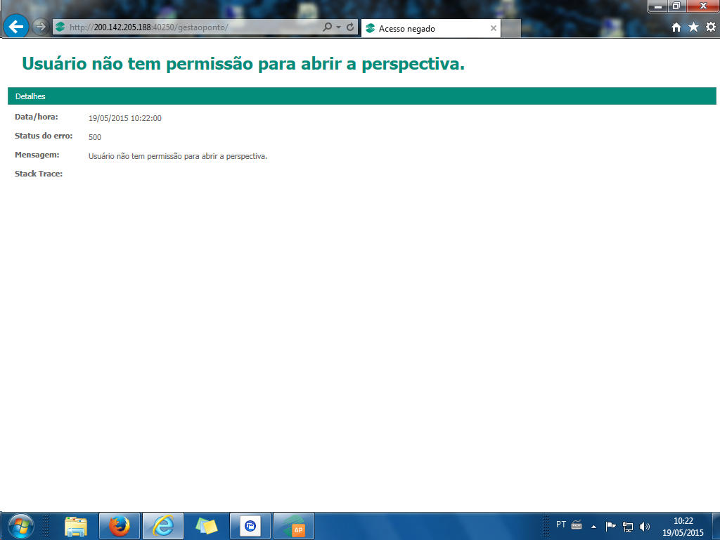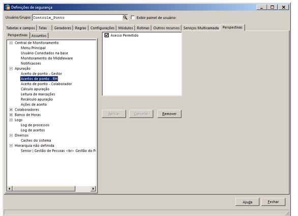Problema: Usuário do Gestão de Ponto faz parte de um grupo de usuários que tem acesso definido na perspectiva (cfe. arquivo .odt anexo) para a tela de acerto de ponto no Gestão de Ponto, no entanto ao acessar o sistema ocorre a mensagem Usuário não tem permissão para abrir a perspectiva (print em anexo);