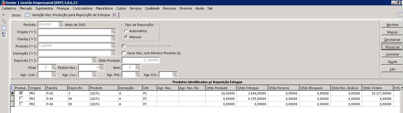 ERP – Produção para Reposição de Estoque – Quantidade a realizar o cálculo de explosão via Produção para Reposição de Estoque está muito maior