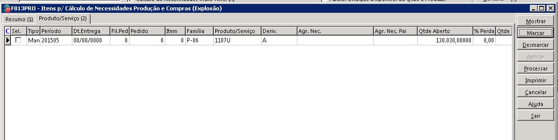 No módulo de Manufatura, após realizar uma reposição de estoque via F816GRP_MPNE - Manufatura / Gestão de PCP / Necessidades de Produção/Compra MRP / Produção para Reposição de Estoque (Geração Nec. Produção para Reposição de Estoque), observamos que na tela F813PRO - Itens p/ Cálculo de Necessidades Produção e Compras (Explosão), a quantidade está muito maior do que deveria.