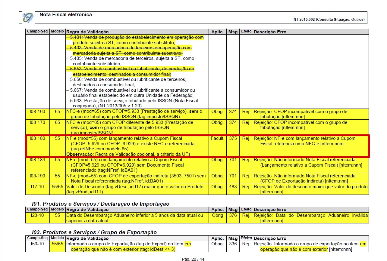 Rejeição 375: NFe com lançamento relativo a Cupom Fiscal referencia uma NFC-e