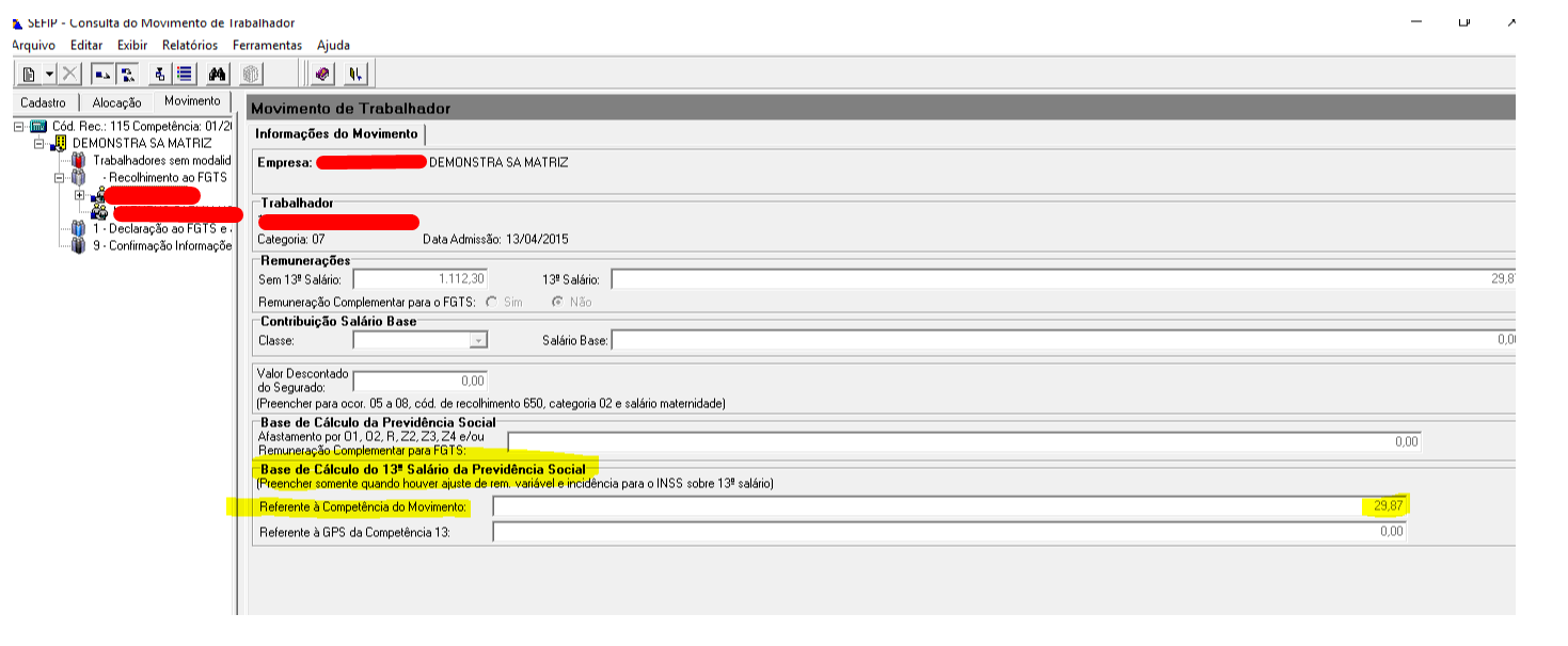 2. Gere e importe o arquivo e realize o zeramento manualmente no campo Referente a Competência de Movimento da base de 13º salario a Previdência, no sistema da SEFIP.