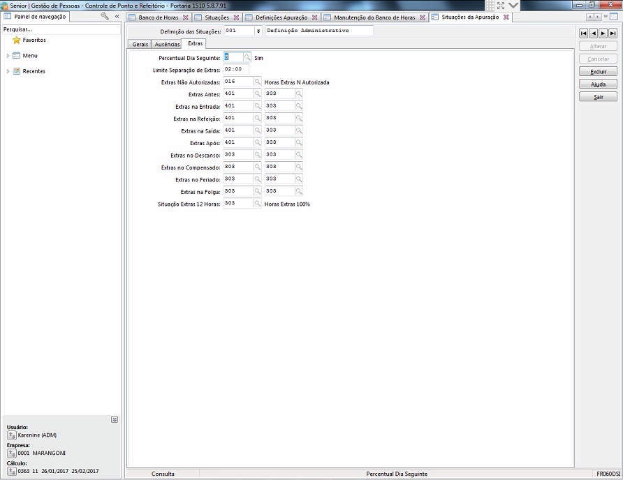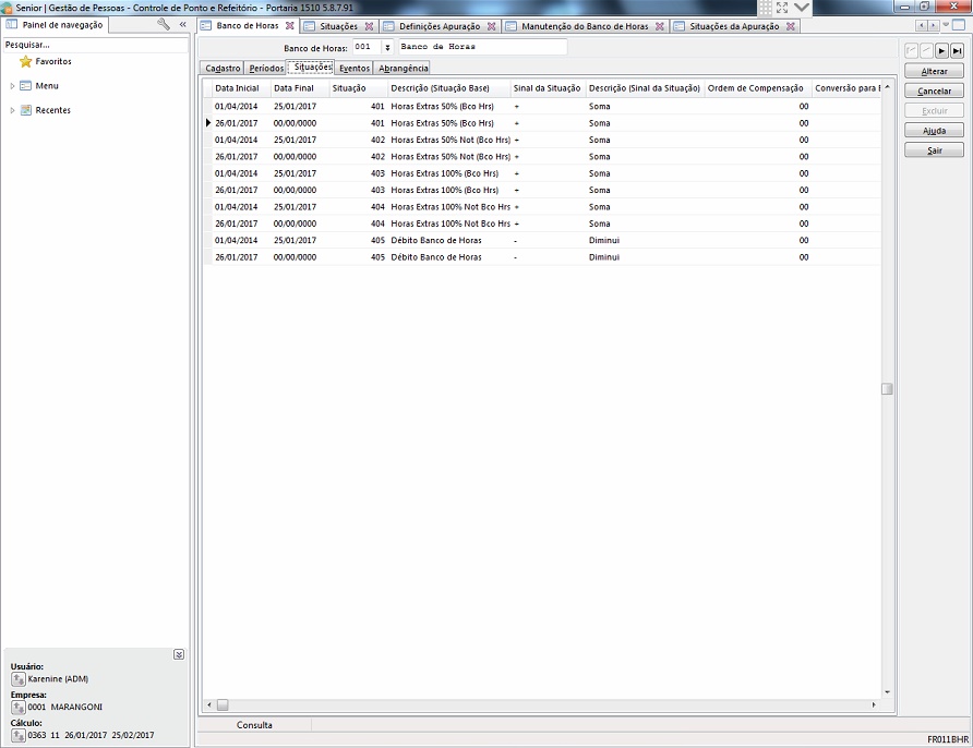 Problema: As apurações de situações de banco de horas não estão sendo geradas na manutenção do banco dos colaboradores (ou seja, no banco de horas).