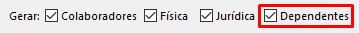 2. Acesse Anuais / Informe/Dirf / Gerar, marque a opção Dependentes: