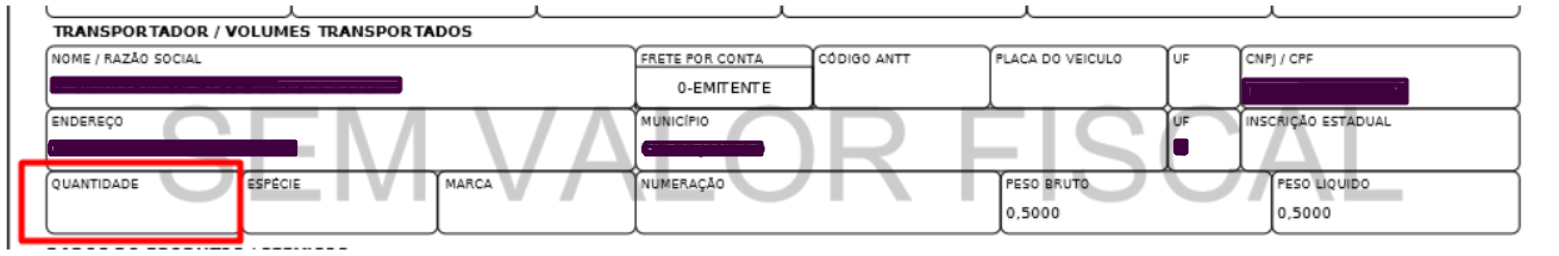 No módulo NF-e, ao imprimir a nota, não está retornando a quantidade de volume.