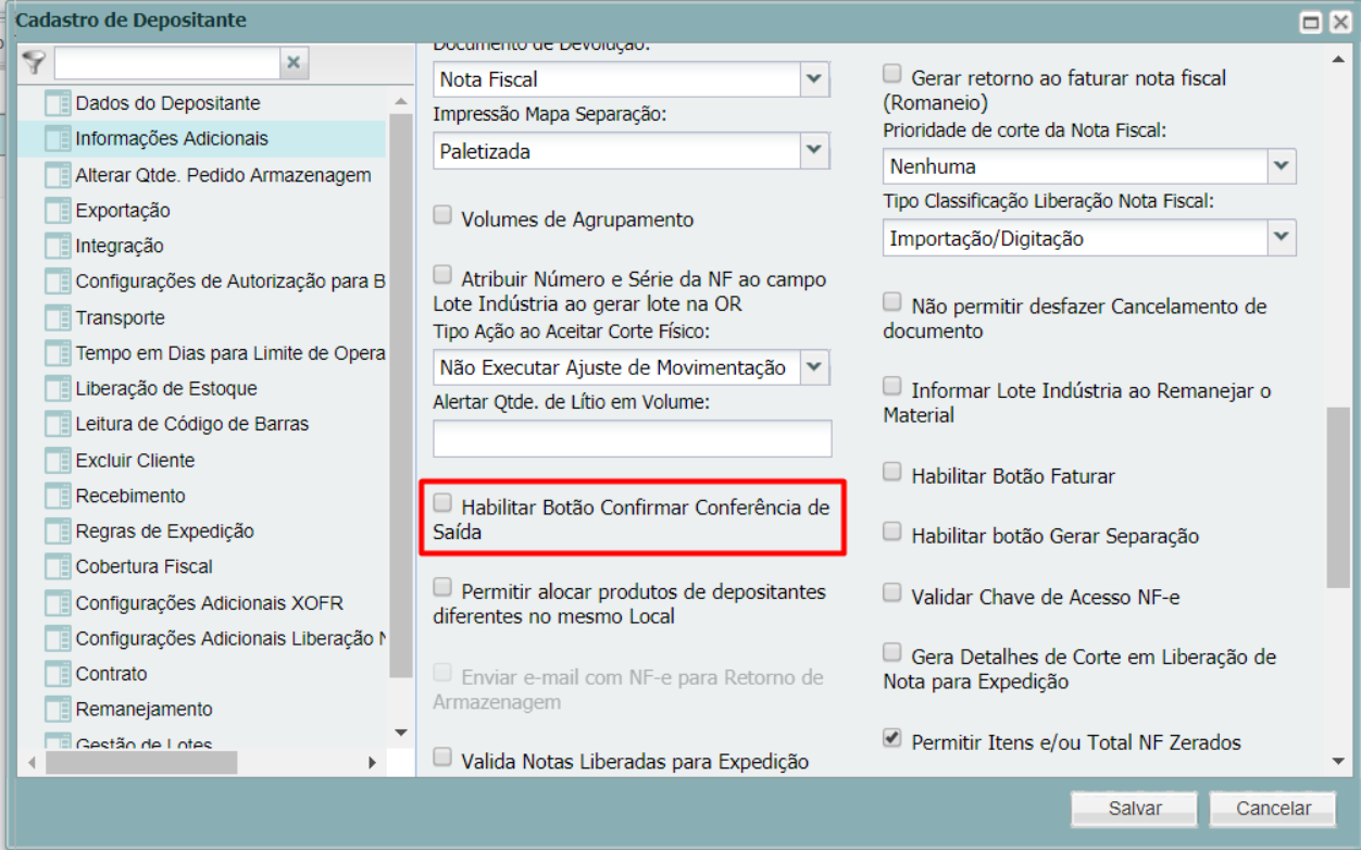 5. Procure e ative o parâmetro 'Habilitar Botão Confirmar Conferência de Saída';