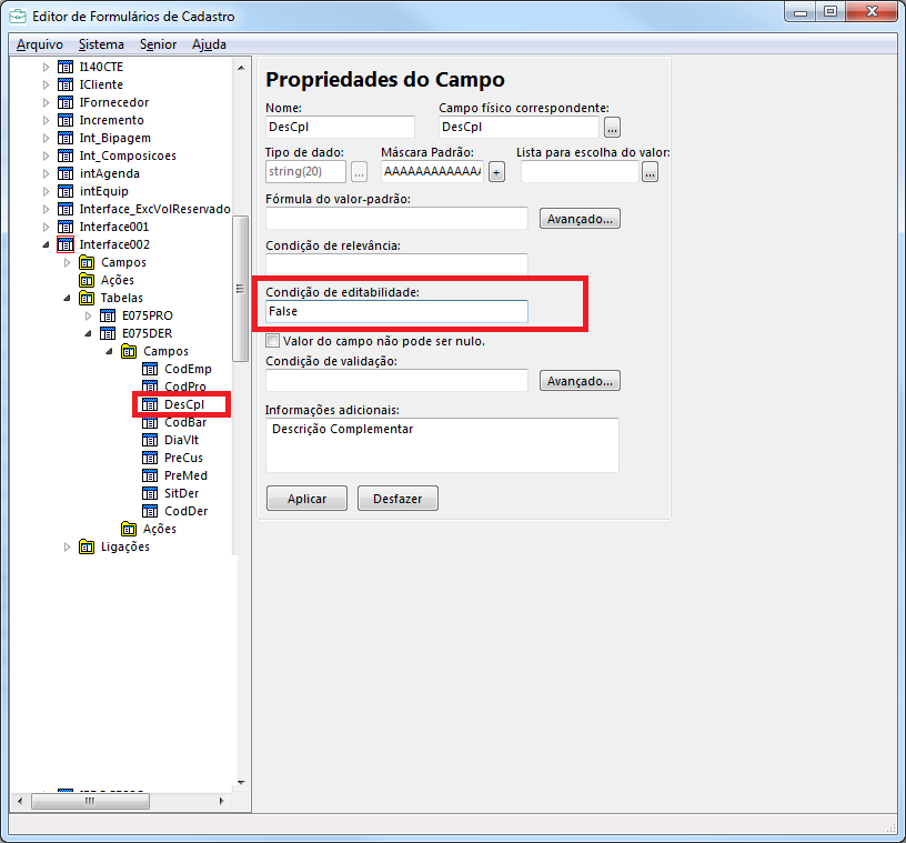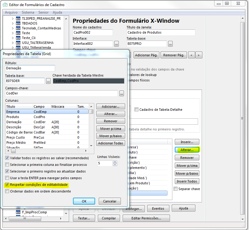 Em seguida, se a necessidade é desabilitar a grid toda, colocar False na tabela da grid conforme print SGI2.png. Porém se deseja desabilitar somente alguns campos, deverá fazer a consistência por campo conforme exemplo SGI3.png.