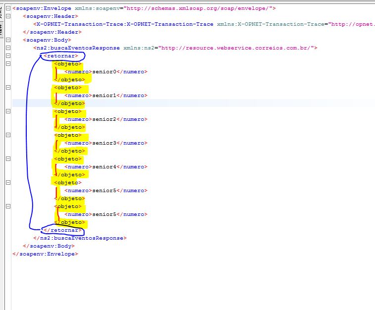 Estou consumindo um webservice de terceiro onde o retorno é similar ao exemplo abaixo, ou seja, no webservice de terceiro o mesmo me retorna uma lista de informações: