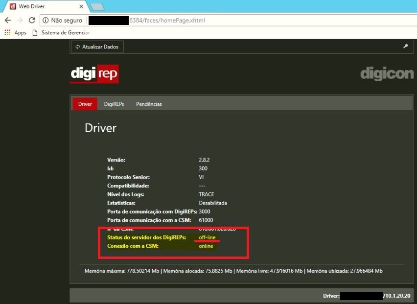20910 - Erro ao enviar comando para DigiREP - Rep manager is off-line