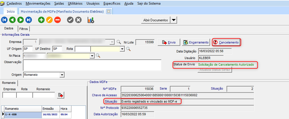 TMS – Movimentação de MDFe - Como realizar o Cancelamento de um MDFe
