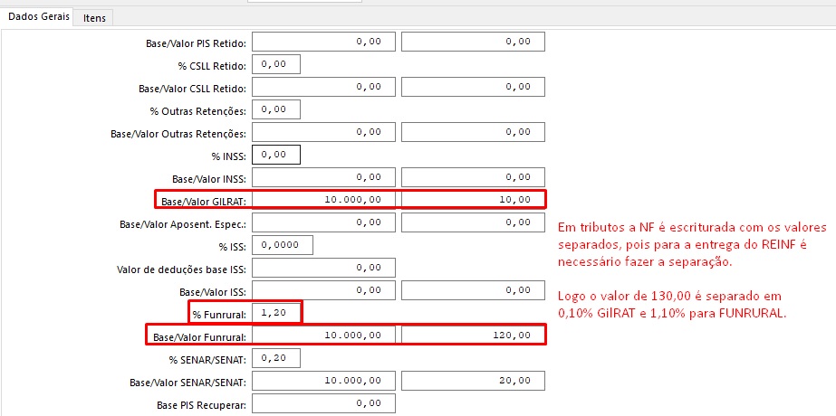 - Com o EFD-Reinf, o valor é apresentado em separado para não causar impacto nas operações dos clientes, o campo de Gilrat presente nas notas fiscais em Suprimentos, será apenas informativo. Além disso, o Funrural neste cenário (Funrural + Gilrat) já é aplicado em toda a cadeia da operação ordem de compra e pedido, para indicar quando deste imposto está somado ao Funrural.