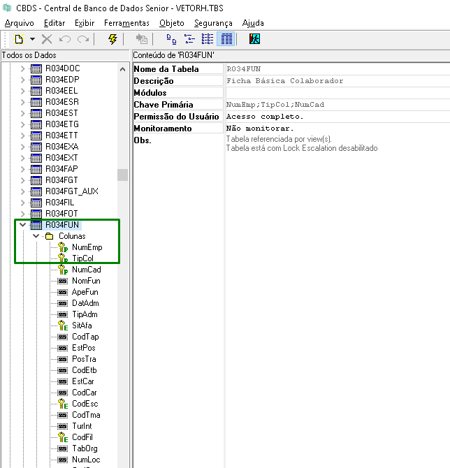 1 - Selecione a tabela que contém o campo (R034fun neste caso);