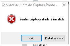 Problema: Descrição do Problema: ServerHora/Captura Ponto apresenta mensagem de Senha Criptografada é inválida.