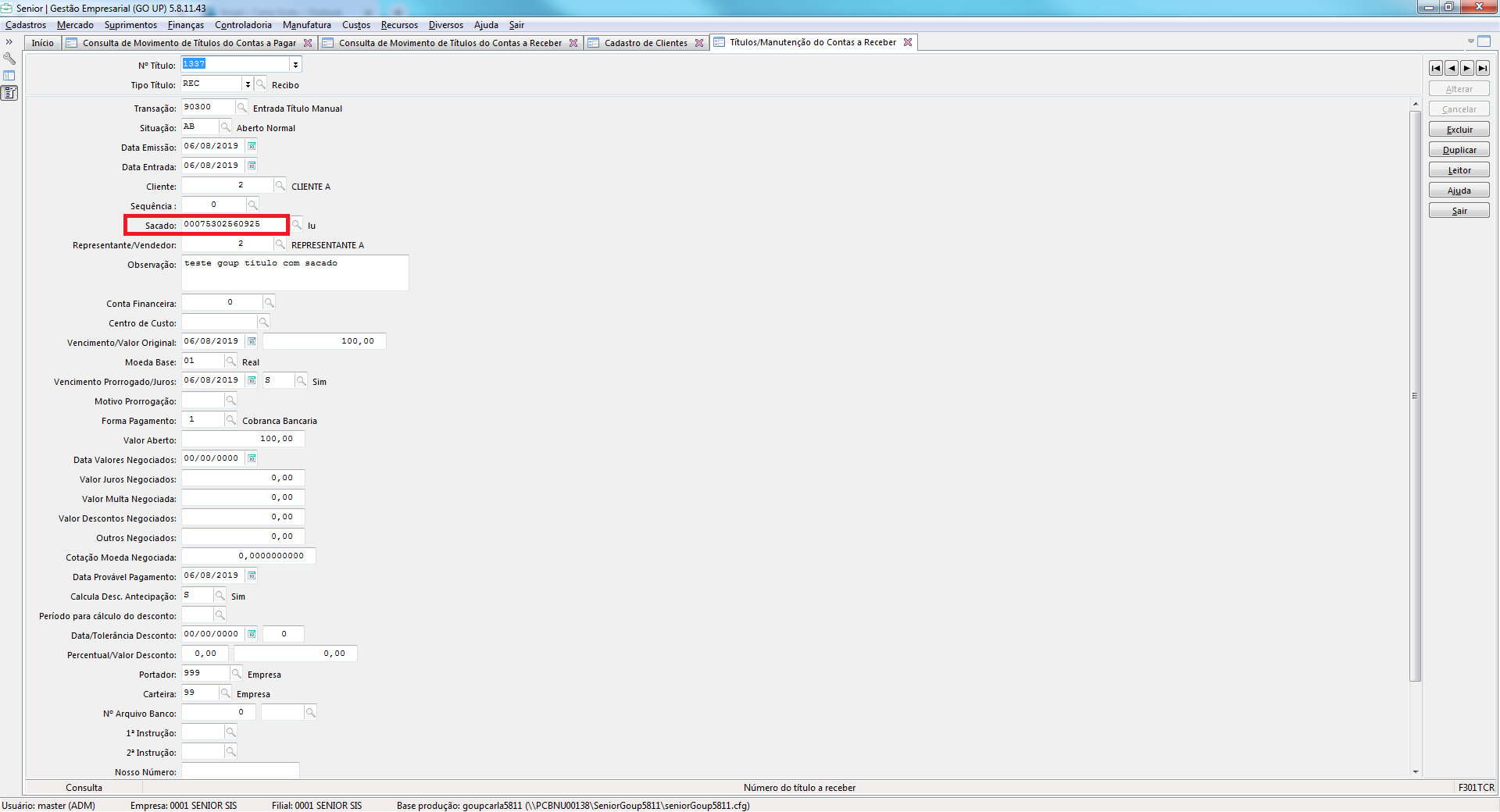 Rotina / Tela: F302CMT_FRCR - Finanças / Gestão de Contas a Receber / Contas a Receber / Consultas / Movimentos