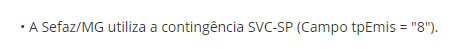 Conforme consta na Sefaz de MG, a contingência deve ser habilitada para o webservice SVC-SP