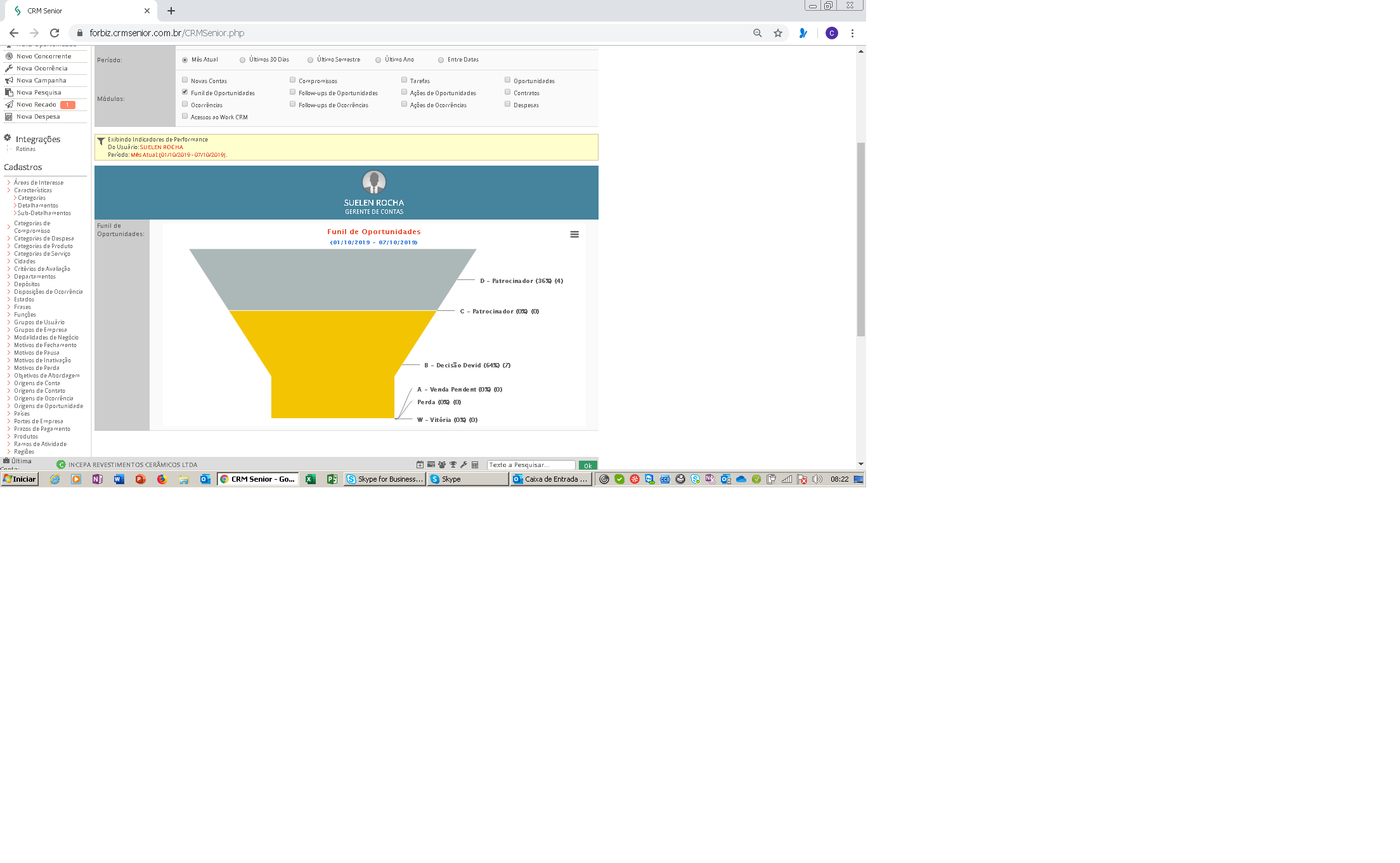 Para configurar o funil de vendas, nome das etapas da oportunidade e percentuais da oportunidade, realize passos a seguir: