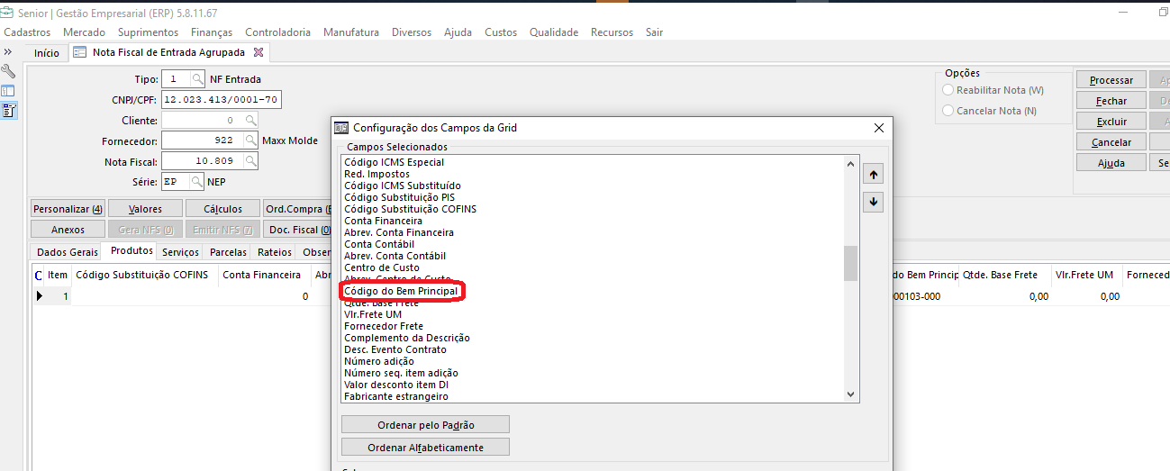 Problema: Quando estou dando entrada em NF no campo produto, na grid com as opções, alguns usuários conseguem ver código do bem principal para inserir o código do patrimônio outros usuários não tem essa opção disponível, onde consigo dar permissão?