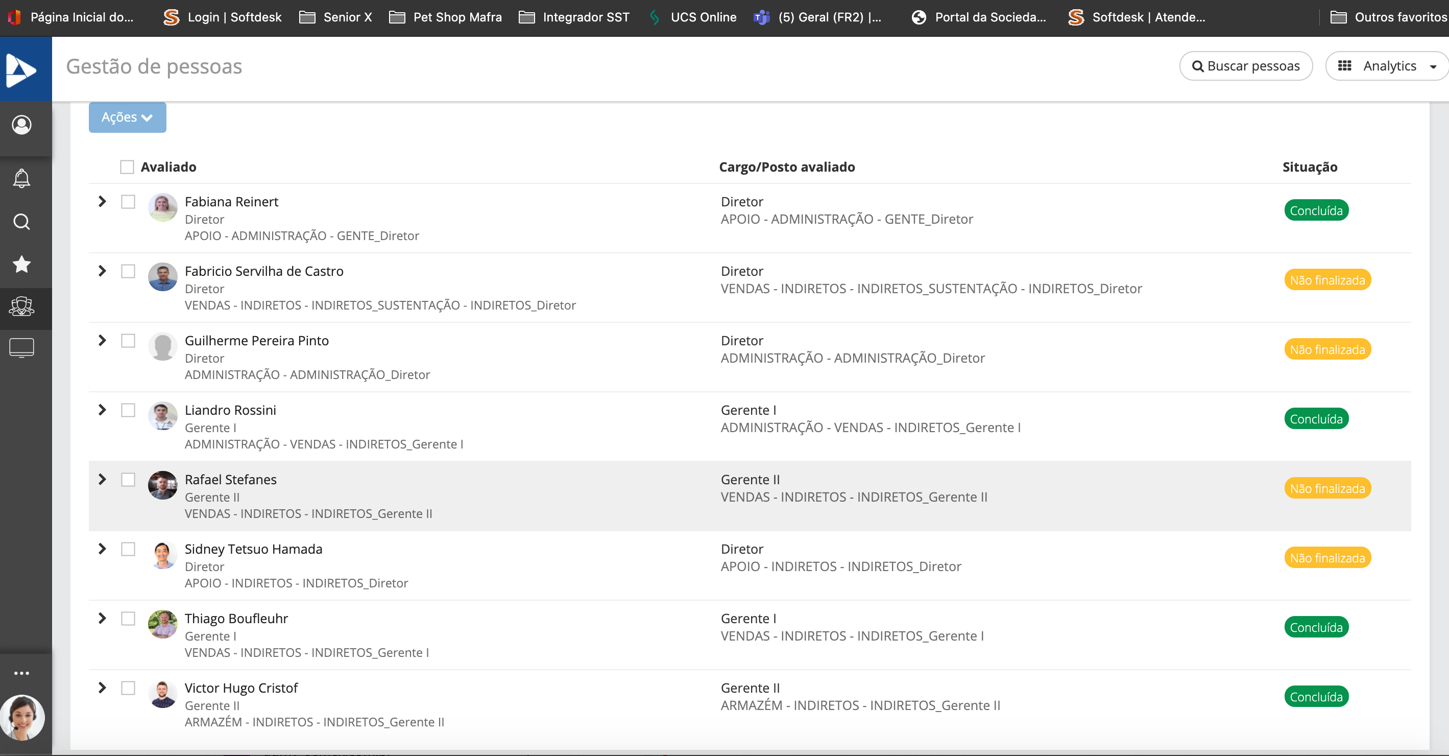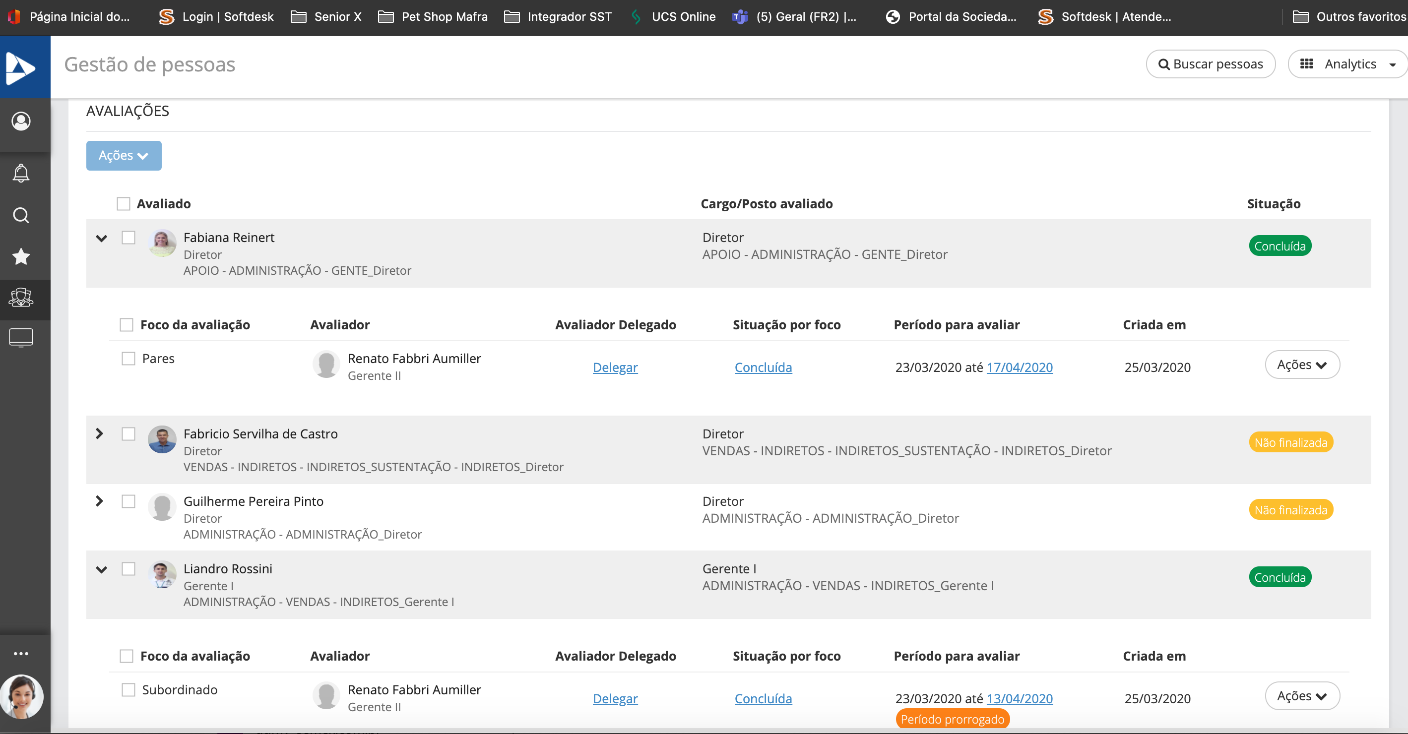 No módulo Gestão de Desempenho, ao consultar as avaliações de um avaliador são apresentados avaliados com a situação Não finalizada, porém todas as avaliações do avaliador para avaliado já estão concluídas.