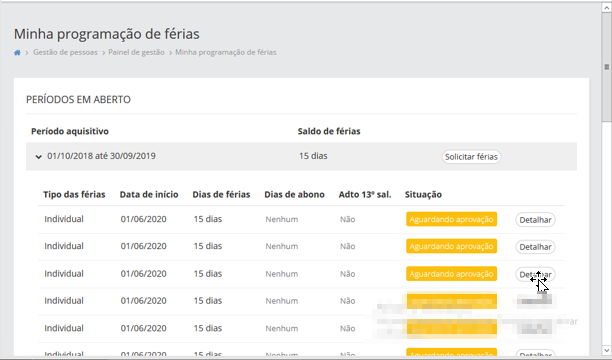 2 - Subordinado visualizada sua solicitação de programação de férias com a situação: Aguardando Aprovação