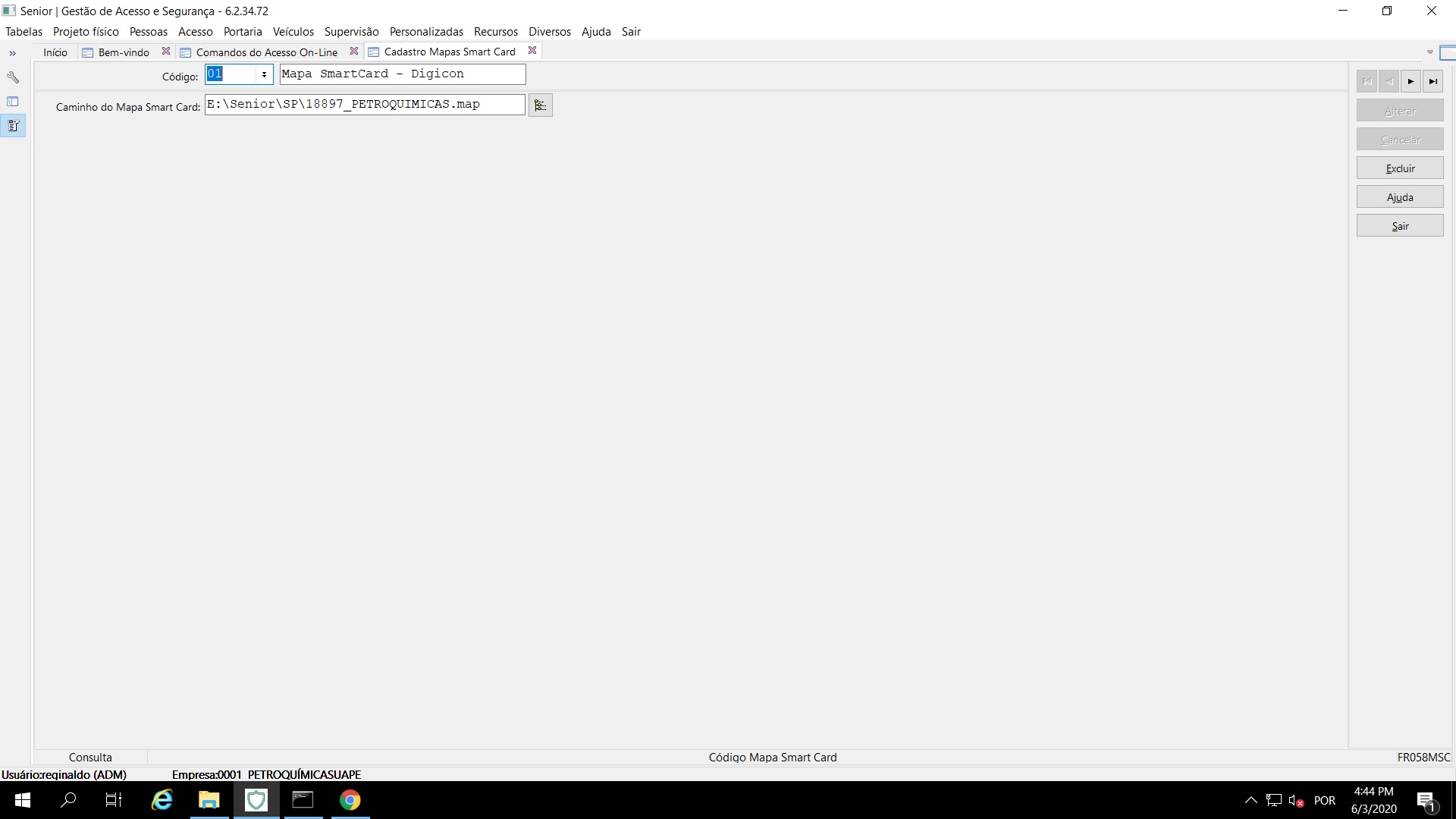 Rotina / Tela: Tela de Envio de Comandos, comando Mapa Smart Card