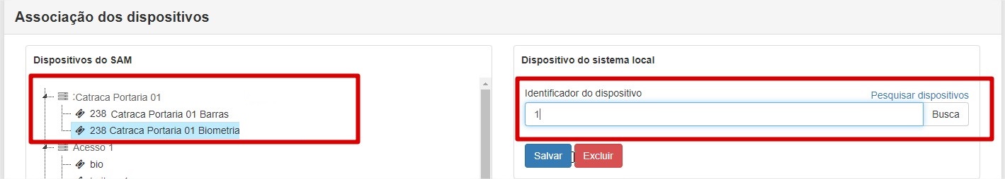 Para corrigir a situação, é necessário abrir o integrador e acessar o menu "Associação dos dispositivos", e vincular o dispositivo do sistema Windows com os do SAM.