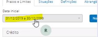 Também na tela do cadastro do banco de horas o único período existente em vez de mostrar a data final do período vazia (sem data), mostrava uma data de 30/12/2099.