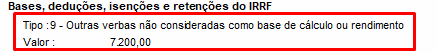 O indicador 9 serve para informar em todas as rubricas que não devem ser consideradas para o IRRF: não são nem rendimentos, nem deduções e nem o próprio IRRF.'