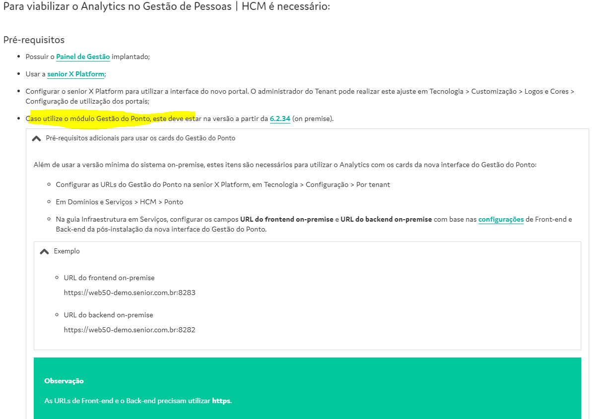 Se em algum destes pontos ainda está na URL do Gestão de Ponto antiga (apenas como exemplo ... senior.com.br:40801 ou ... senior.com.br:40811), alterar por exemplo para ...senior.com.br:40801/gestaoponto-frontend