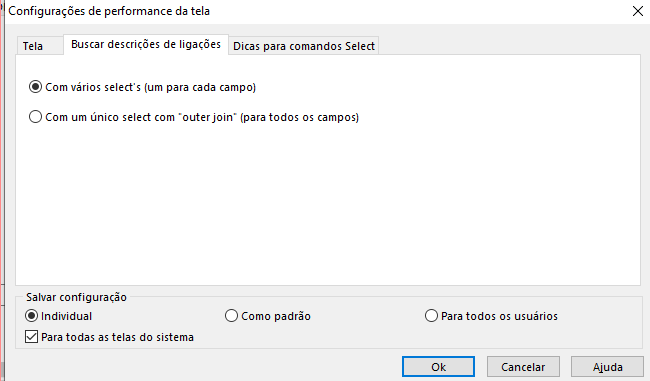 - Alterar para: 'Com vários select's (um para cada campo)'